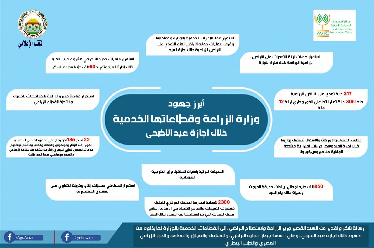 أخبار, أخبار عاجلة, أخبار مصرية, أخبار هامة إنفوجراف | تعرف على أبرز جهود وزارة الزراعة وقطاعاتها الخدمية خلال إجازة عيد الأضحى 25 يوليو 2021