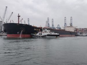 ويبلغ طول السفينة ( 289 مترًا )، فيما يصل غاطسها إلى( 15,5 مترًا )، وهو ما يعكس الجاهزية الفنية العالية للميناء وقدرته على استقبال السفن ذات الحمولات القياسية، في ضوء أعمال التطوير المستمرة التي تشهدها البنية التحتية للميناء.